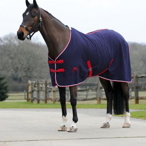 Please note these rugs are a mixture of colours• Cotton drill outer fabric• Smart 2 tone binding• Nylon lined shoulders to help prevent stretching and rubbing• Fleece wither protection• Low cross surcingles, adjustable twin chests straps and fillet string