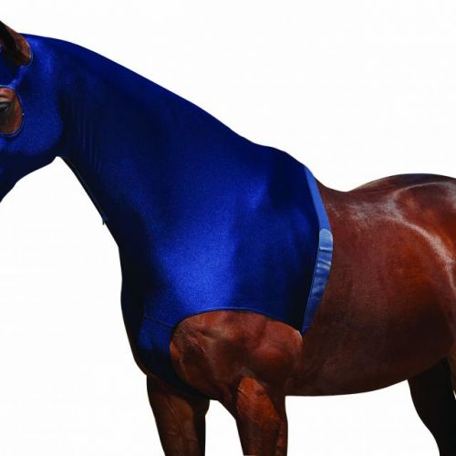 Stretch hood with zip and belly closure to keep manes and plaits clean and tidy.