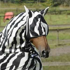 The Bucas Buzz Off fly mask protects from flies and midges during the summer months. An ideal accompaniment to the Bucas Buzz-Off rug, this Fly Veil is made from a lightweight fine mesh fabric, which also offers UV protection from sunburn. This veil is simple to attach and undo, with touch and close fastenings. This unique Zebra print will keep all the flies away.