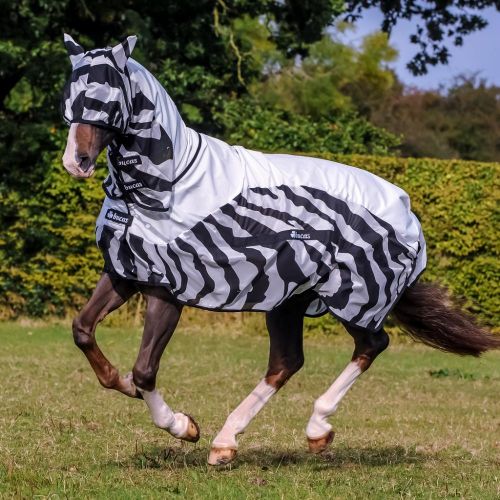 Made from specially developed light weight fine mesh fabric which blocks even the smallest of insects and reduces the effects of ultraviolet radiation. The full neck provides full protection along side the innovative belly pad which also ensures the rug is kept in place. The overlapped, padded and lined front provides superb comfort and protection, leg straps included. What’s more, there’s the option of a matching fly mask, too. Without doubt, this clever new Bucas zebra patterned fly rug, which offers added UV protection, is definitely a product your horse would want you to buy.