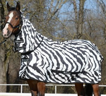 Bucas Sweet Itch Zebra also offers UV protection for horses preventing sunburn and stopping the coat from getting bleached.