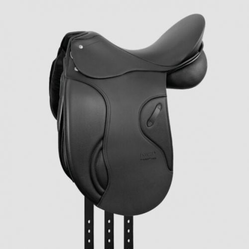 PS saddle tree with frt-System®, deep seat, choice of large, broad or narrow, high thigh supports with Velcro, gusset at front, V-girth arrangement, freedom panels